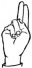 На ћирилици написано ДИНА БОВАН састоји се из 9 слова [?]. Исписано ћириличном једноручном азбуком за глувонеме: